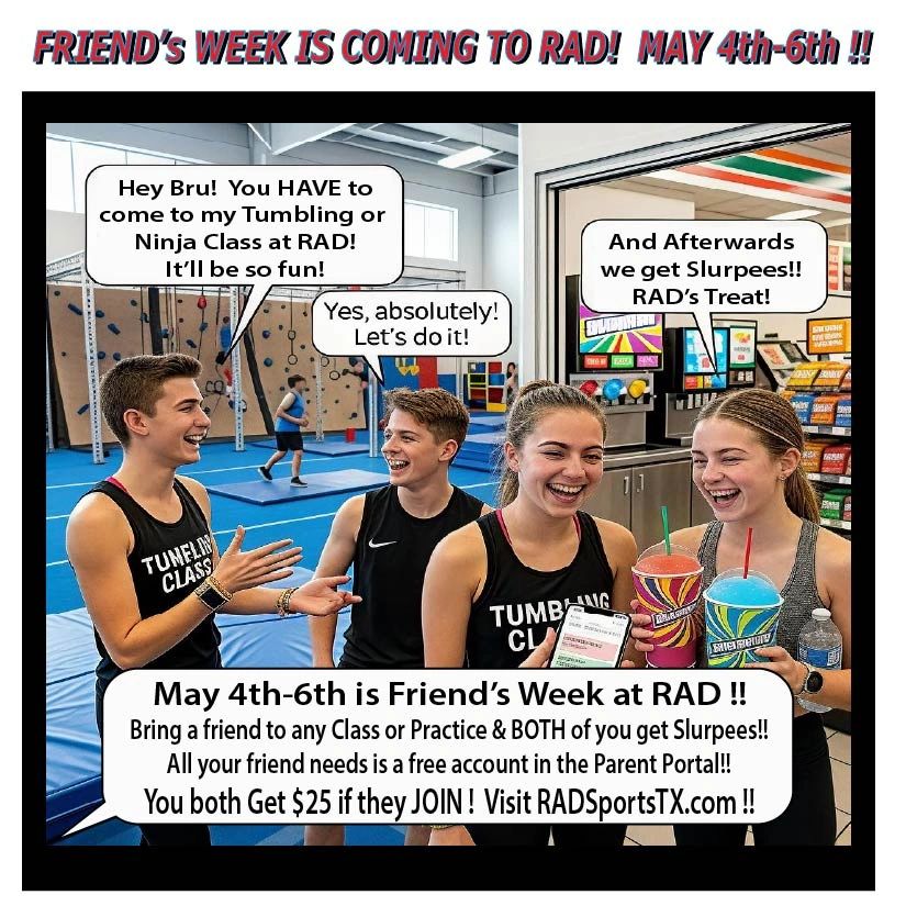 Members bring a friend to class May4th-6th for a FREE Slurpee!!