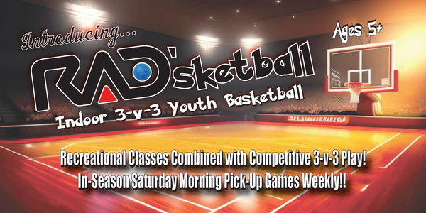 RAD’sketball is here shake it up! Step onto our new indoor wood court for epic 3-v-3 basketball action. You'll enjoy weekly team practices capped off with gamedays featuring announcers, halftime shows, and amazing production to elevate your typical youth sports experience.